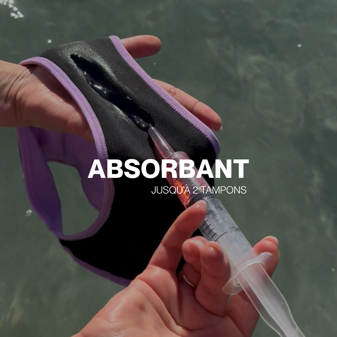 A technical lining that absorbs menstrual flow while remaining light and thin in water. Tested in real-life conditions to guarantee long-lasting and reliable protection.